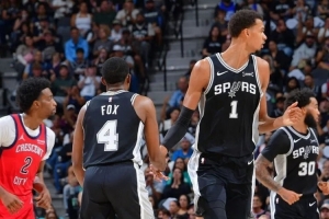 然后是第四节,鹈鹕追近时,马刺需要有人接管。福克斯一条龙突破,再一个跨步抛射,锁局。