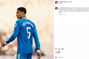贝林厄姆社媒:客战巴列卡诺总是很难,但我们拿到了1分并向前看