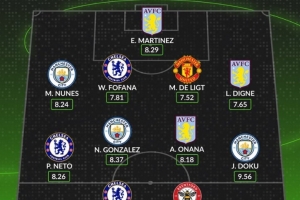 中场:内托切尔西)、尼科-萨雷斯曼城)、奥纳纳(维拉)、多库曼城