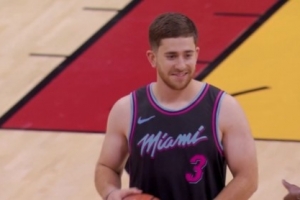 体育资讯11月11日讯 热火主场迎战骑士,节间休息时间球迷半场三分活动,一位热火球迷半场三分一击命中,拿走5000美元奖金。