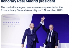 体育资讯11月11日讯 皇马官网消息,2023年11月11日,何塞-马丁内斯-皮里在皇家马德里城篮球馆举行的特别全体大会上,被一致推选为俱乐部的荣誉主席。这一任命至今已有两年。