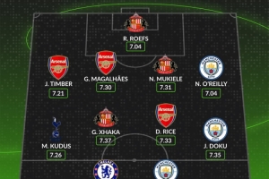 后卫:廷伯阿森纳)、加布里埃尔阿森纳)、穆基勒桑德兰)、奥赖利(曼城