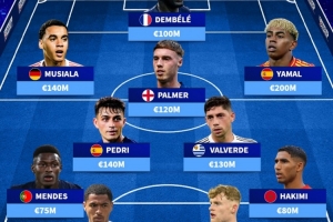 因伤无缘本期国家队11人阵:总身价11.1亿欧,登贝莱、亚马尔在列
