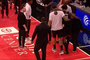 还是好兄弟!伊森受伤 亚当斯将其搀扶离场 两人此前曾有过冲突