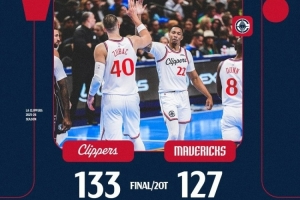 体育资讯11月15日讯 NBA西部NBA杯B组,快船双加时133-127独行侠