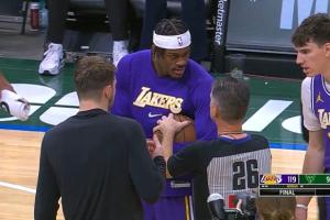 体育资讯11月16日讯 在今日湖人战胜雄鹿的赛后,双方球员以及裁判针对比赛用球展开了一段拉扯。