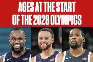 如果届时库里姆斯、甚至是杜兰特参加洛杉矶奥运会,他们三人的年龄将分别是43岁、40岁和39岁。