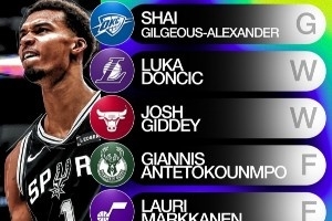 其中世界队为:亚历山大、东契奇、吉迪、字母哥、马尔卡宁、约基奇文班亚马申京