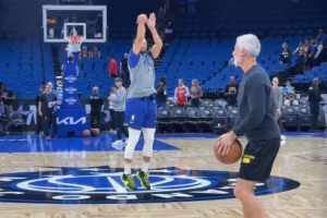 上一场得到9分躺赢一把&今天能反弹吗?库里赛前Logo三分两连中