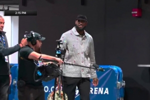 提前五个多小时!晚间7点半的比赛 詹姆斯下午2点15就到场备战