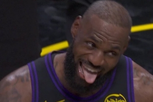 嗨了!詹姆斯第10个助攻打停爵士之后吐舌头&大笑庆祝😃