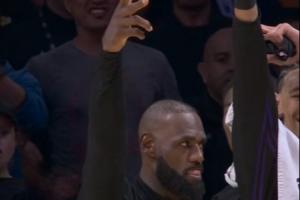 小詹也来啦!布朗尼披挂上阵三分张手就有 詹姆斯场下开心庆祝