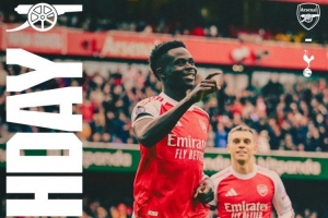 阿森纳官方社媒晒出北伦敦德比海报,萨卡特罗萨德出镜。