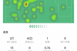 普利西奇本场数据:2脚射门打进1球,11次对抗2次成功,获评6.4分